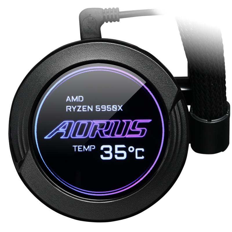 AORUS WATERFORCE X 240, All-in-one Liquid Cooler with Circular LCD Display, RGB Fusion 2.0, 120mm ARGB Fans