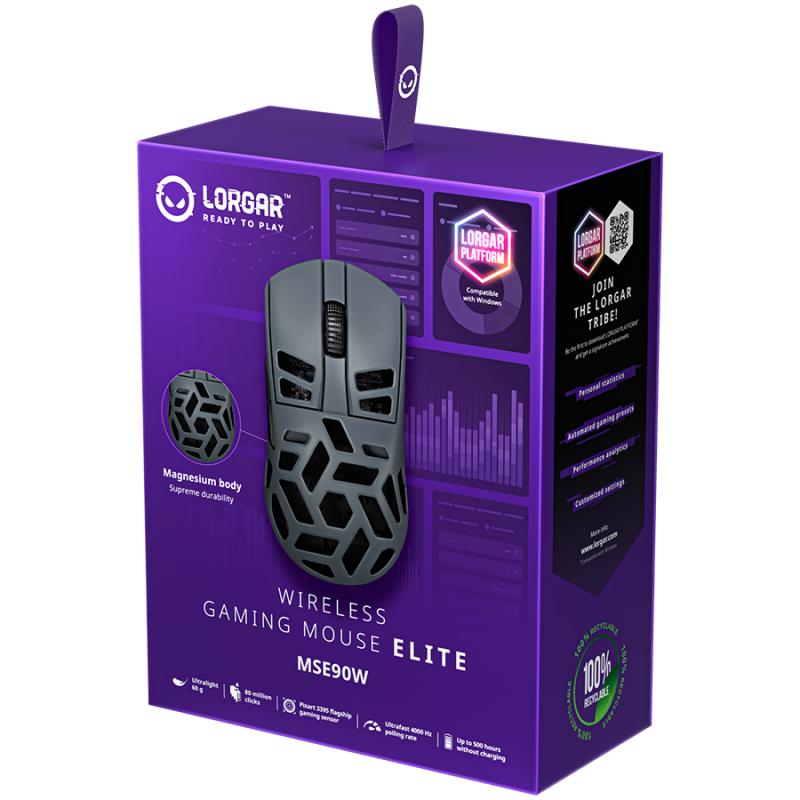 LORGAR MSE90W, Magnesium Alloy Wireless Gaming Mouse Elite, Dark Grey
