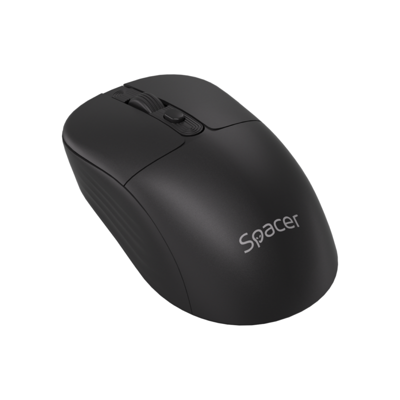 Mouse Spacer wireless, rezolutie 1600DPI, butoane/scroll 4/1,buton ON/OFF, click silentios S/D, baterie 1 x AA, inclusa, dimensiuni 108 x 62 x 36mm, negru